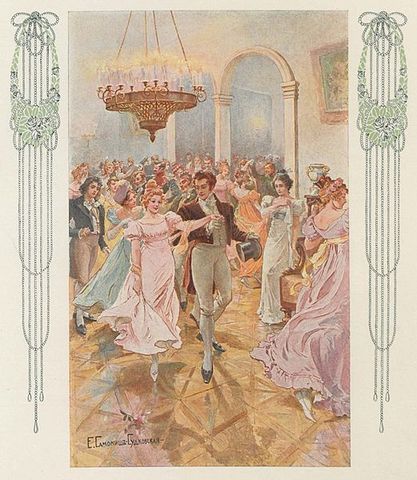 Бал у ЛариныхВихрь вальса и веселый гром мазурки, звучащие теперь в XLI и XLII, появляются как некая компенсация за скудость изображения бала в гл. 1, XXVIII, и с дрожью узнавания неожиданно ощущается трагическая атмосфера сна Татьяны, когда Ленский в ревнивом негодовании видит, как Онегин флиртует с Ольгой (XLIV), и, полный решимости на следующий же день вызвать Онегина на дуэль, покидает праздник (XLV).