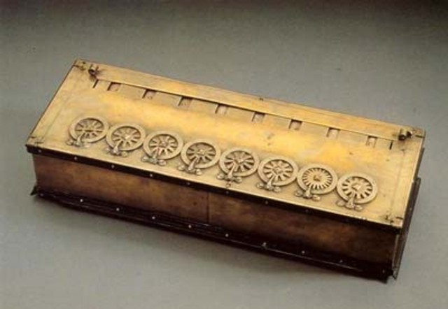 в 1673 году великий математик Готфрид Лейбниц,развив идею Паскаля, создал механический арифмометр на котором можно выполнять все четыре арифметические опер фции с многозначными числами