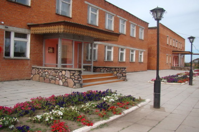 Это прежде всего необычный комплекс по одной крышей школа и Дом культуры.