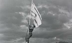 הלוחמים הניפו את דגל הדיו, שצוייר על הנייר בגלל שלא היה להם דגל ישראל. -