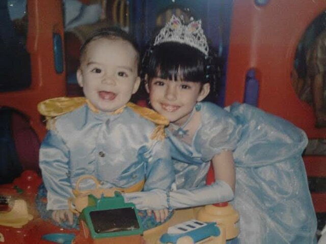 Para el primer año de mi hermano y mis 5 años, mi madre decide hacernos una fiesta de cumpleaños con tematica de princesas, yo me visto de cenicienta y el, del principe azul. -