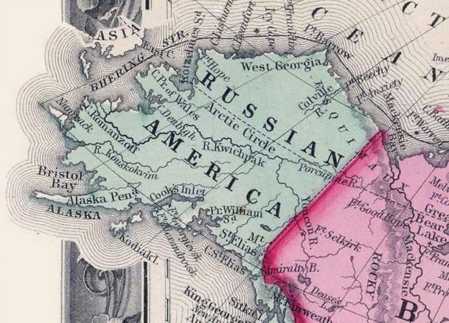 Первое достоверно известное пребывание великорусов в районе Аляски относится к 1648 году. В этом году землепроходцы во главе с Федотом Поповым и Семеном Дежневым вышли из устья Колымы и прошли Берингов пролив. Самую крайнюю точку Азии, где разбился один из кочей, они назвали Каменный Нос. Позднее это место переименовали в мыс Дежнева.