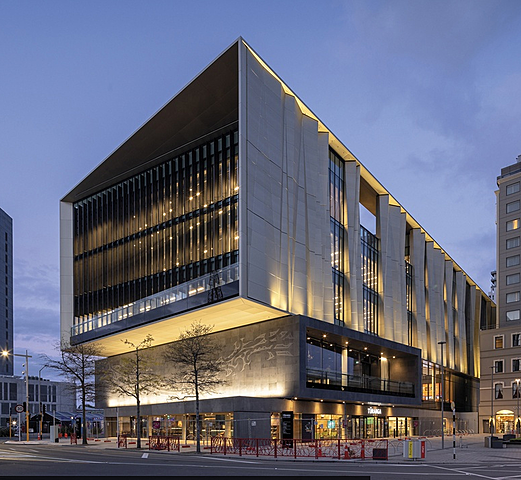 The library is unique as it houses an innovation zone, for trialing new technology and a $1.245 million discovery touchscreenwall. At night the library lights up to become a lantern, which lights up the Cathedral Square.