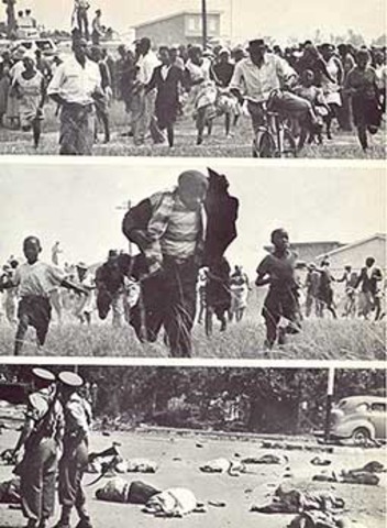 South African police opened fire on unarmed demonstrators in the black township of Sharpeville near Johannesburg. The demonstrators were protesting the establishment of apartheid pass laws which restricted movement of non-whites.