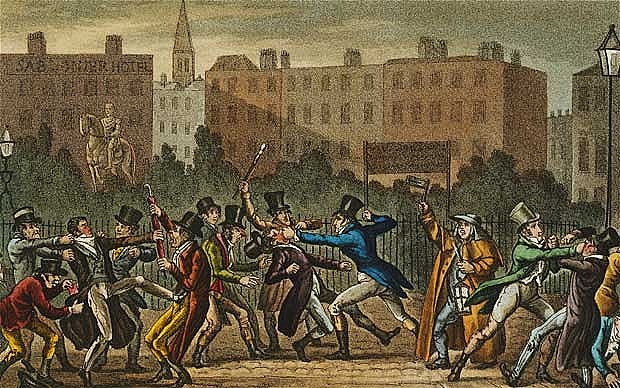 The Boston Massacre was a street fight that occurred between a "patriot" mob, throwing snowballs, stones, and sticks, and a squad of British soldiers. Several colonists were killed and this led to a campaign by speech-writers to rouse the ire of the citizenry.