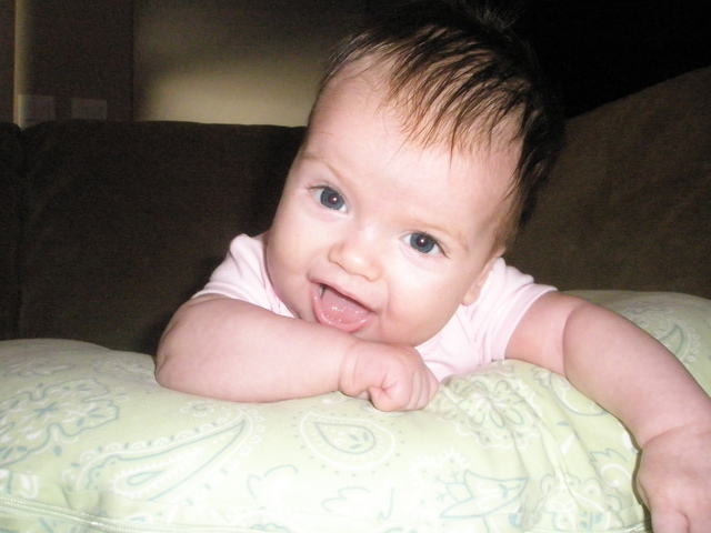 Emery rolols over for the first time by herself. She is bound and determined to keep moving... let's see when she sits up!
