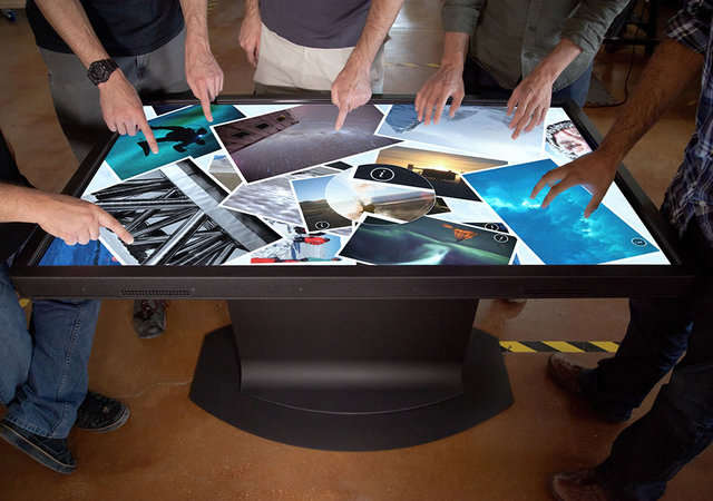 В проекционных экранах рядом с проектором ставится камера. Так устроен, например, Microsoft PixelSense.