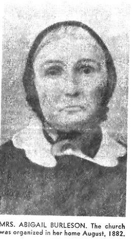I can not locate the actual date, but we do know that Abigail and her then husband Cummings Burleson opened their home in Johnson Creek back in 1882 and began the first Primitave Baptist Church in the area. This article was placed in the paper to celebrate the Centinnal Celbration of that Church. Article provided by: D. Chapman- 4 April 2009
