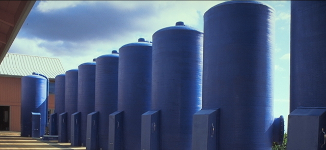 24,000 sq ft Spirulina Culture System producing 2000 wet pounds per day harvested and freeze-dried, 200 pounds per day of 65% pure protein crystals, 20% phycocyanin.