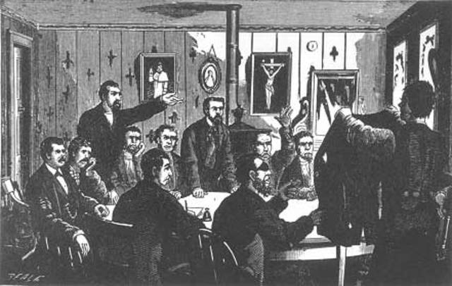John Siney leads first strike at the Eagle Colliery to protest a 10% wage cut—the strike was successful and the workers formed The Workingmen’s Benevolent Association (WBA) which soon grew to 30,000 members