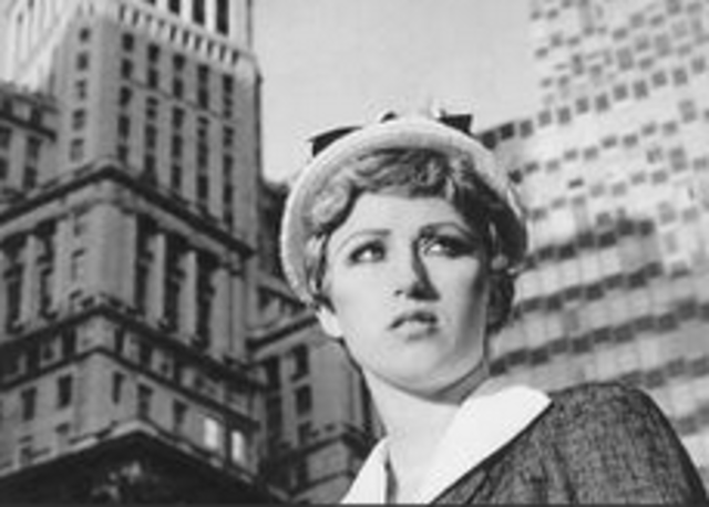 Sherman analyzes how society views women portrayed in stereotypical roles. She portrays herself as this fashion victim and uses high contrast color to echo the drastic attire and uncomfortable angle.