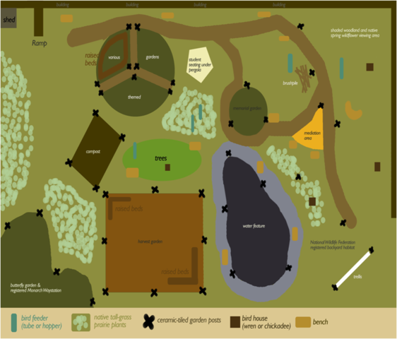 -OWNERSHIP--ie: Involve the students in the plan—research local ordinances, school regulations, habitat resources on site, soil features, geography, etc. -