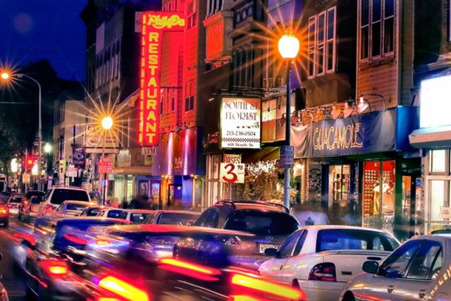 South Street was known as the garment district in the early 1900's up until the 1950's. Things would change when city planner Edmund Bacon proposed the Crosstown Expressway, a short limited-access expressway connecting the Schuylkill Expressway and I-95. Real estate values plummeted, drawing in a new crowd of people.