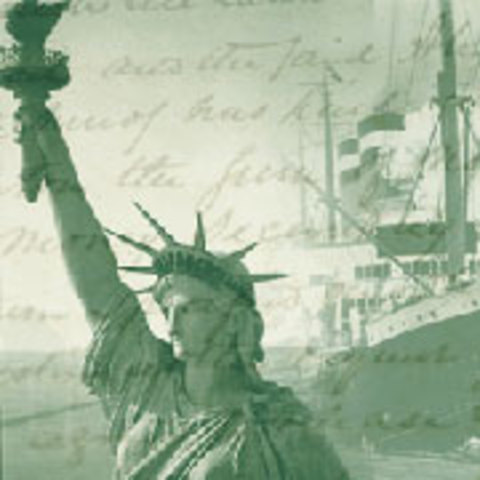 I enter America by steamship. I go through a health inspection and I wait long hours to speak with a government official. I move into an apartment with two other immigrants. They become my friends and we work in the same clothes factory.