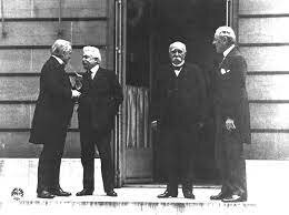 Versailles-i kastély Elzász, Lotaringia, Danzig, Memel-vidék, Észak-Schleswig, Felső-Szilézia és gyarmatok elvesztése. Saar-vidék a Rajna bal partja népszövetségi ellenőrzés alá kerül, a Rajna jobb partján demilitarizált övezet alakul 50km-es sávban. A hadsereget 100 főben korlátozták, fejlett hadi technológia használatát és gyártását (harckocsik stb.) megtiltották. Anschluss tiltása. Jóvátétel fizetésének leszögezése. II. Vilmos elítélése (Hollandiába menekül így a büntetés sikertelen). -