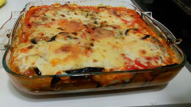 Quan les verdures estiguin cuites, s'afegirà la salsa de tomàquet, i s'aniran fent capes amb les verdures. Al final s'hi afegirà la beixamel i el formatge i es deixarà coure i gratinar al forn durant mitja hora.