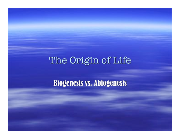Abiogenesis (Spontaneous Generation): Life can appear spontaneously from nonliving matter. -