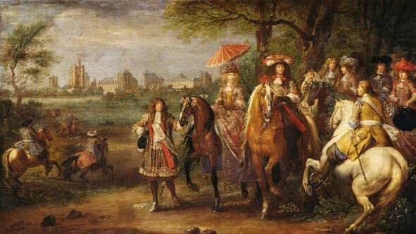 Estaba confiado en que su derecho para gobernar era divino y absoluto. Después de las Frondas, Luis, no confiaba en los Nobles, y dedicó su vida a conolidar su poder como rey absolutista. Se mudó al Palacio de Versalles, a las afueras de París. Se llevó con él a los nobles más poderosos de Francia. Todo giraba alrededor del rey. Luis hizo esrto con el fin de incapacitar a los nobles de conspirar contra el rey. -