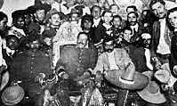 Celebrando los tratados de cuidad juarez donde Porfirio Diaz y Ramon de Corral aceptaban la renuncia del poder, dando fin así al Porfiriato. Porfirio Diaz es sustituido por por Francisco León de la Barra.