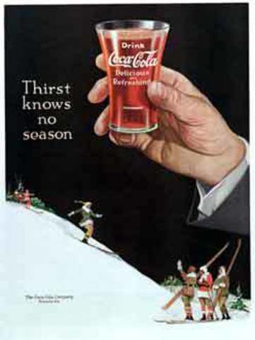 This image uses snob appeal - the people in the illustration all look happy, don't they? They all have cokes with smiles on their faces, and the weather looks pleasant to be in. Displaying coke in this area makes it seem like peoplle could also participate in the scene. -