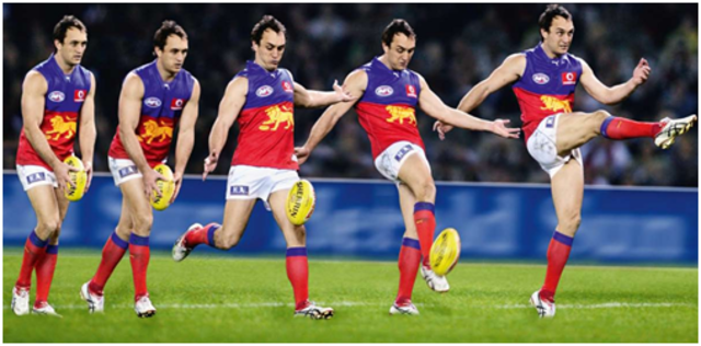 Make sure you are holding the ball with two hands as you begin your run up, as you gain momentum and are about to kick, take one hand off to steady you body while the other hand guides it onto your boot