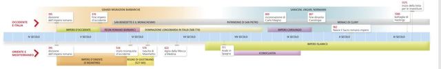 ALTO MEDIOEVO By NickFerr06 395 DIVISIONE DELL'IMPERO ROMANO Period: 395 to 476 IMPERO D'OCCIDENTE 476 FINE IMPERO D'OCCIDENTE Period: 527 to 565 REGNO DI GIUSTINIANO 534 INIZIO RICONQUISTA D'OCCIDENTE Period: 568 to 744 DOMINAZIONE LONGOBARDA IN ITALIA 570 NASCITA DI MAOMETTO 622 EGIRA DELLA MECCA A MEDINA 711 ARABI IN SPAGNA 800 INCORONAZIONE DI CARLO MAGNO Period: 800 to 887 IMPERO CAROLINGIO 887 FINE DINASTIA CAROLINGIA 962 NASCE IL SACRO ROMANO IMPERO 1066 BATTAGLIA DI HASTINGS 1075 INIZIO LOTTA PER LE INVESTITURE