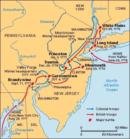 Battle between US and France Vs. Great Britain, Hesses and Ansbach. US/France leaders: George Washington, Marquis De Lafayette, Compte de grasse