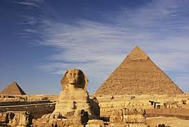 The fourth dynasty begins and the Great Pyramids of Giza and the Sphinx are built. This is often called the age of pyramids. The fourth dynasty is a time of peace and also a time when sun god became prominent in Egyptian religion. The Old Kingdom nears its end as the 7th and 8th dynasties are weak and the government begins to collapse. The end of the Old Kingdom is a time of poverty and famine.