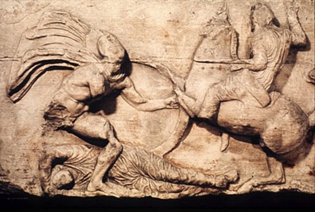The Battle of Marathon took place in 490 BC, during the first Persian invasion of Greece. It was fought between the citizens of Athens, aided by Plataea, and a Persian force commanded by Datis and Artaphernes.