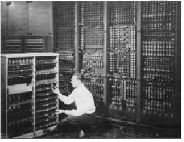 en la Universidad de Pensilvania se construye la ENIAC (Electronic Numerical Integrator And Calculator), que fue la primera computadora electrónica de propósito general. Esta máquina ocupaba todo un sótano de la Universidad, tenía más de 18.000 tubos de vacío, consumía 200 kW de energía eléctrica y requería todo un sistema de aire acondicionado; tenía la capacidad para realizar cinco mil operaciones aritméticas por segundo.