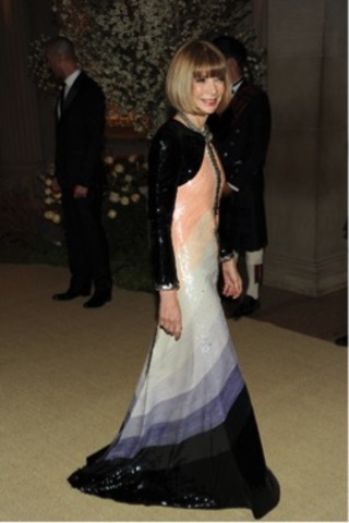 Wearing a Chanel suit that was on the runway the day before, Anna accepts the medal from the French President, Nicolas Sarkozy.