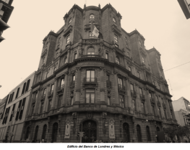 Inicia la banca en México con el establecimiento en la Ciudad de México de la sucursal del banco británico The Bank of London, Mexico and South America.