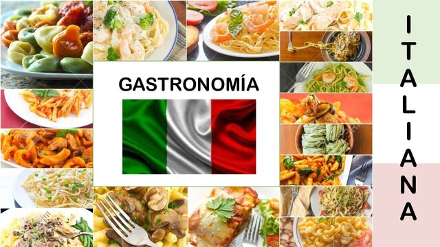 La gastronomía italiana se caracteriza por sus elaboraciones con abundantes verduras, frutas, carnes, pescados, arroz, pastas y panes. Otro de sus platos típicos, además de la pizza y pasta, es el rissoto, la lasaña y el carpaccio.