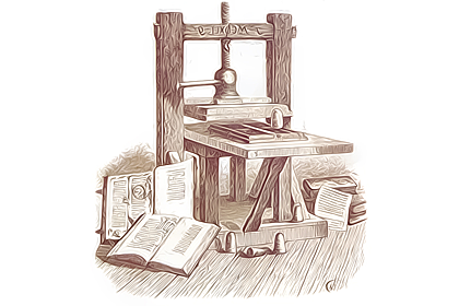 Figura #2. La primera imprenta apareció en 1400 aproximadamente, y refiere a un mecanismo capaz de reproducir textos e imágenes en un soporte de papel, de tela o de otros materiales, con el fin de producirlos a gran escala.