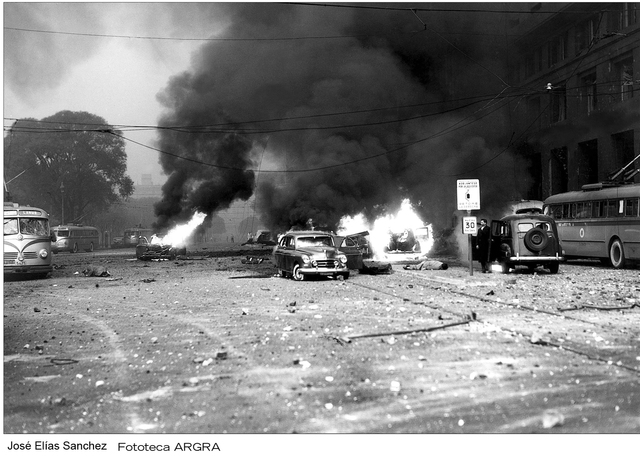 a principios de 1955 el gobierno de peron s16 junio 30 aviones bombarderos marina y aeornautcia bombardean plaza de mayo, quieren forzxar la renunica de peron, no tiene exito, 308 causas civiles y doble, peron intenta tregua luego, fracasa. "por cadad uno de los nuestros, caeran 5 de ellos" -juan domingo peron-16 de septimebres 1955, toma de guarniciones y avanze de los sublevados hacia las capitales peron se rinde y refugia en paraguay, asume leonardi 20 de septiembre