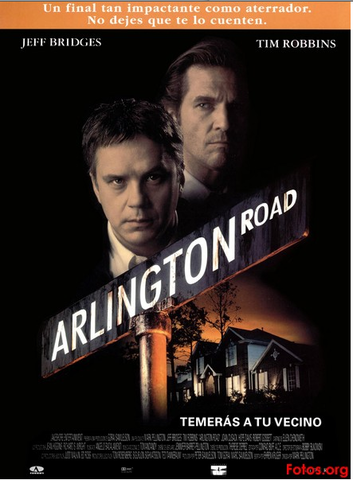 The colours of fire is used to show danger around the neighbourhood. The houses and fence are shown more than once to make it seem like the whole neighbourhood has been trapped.