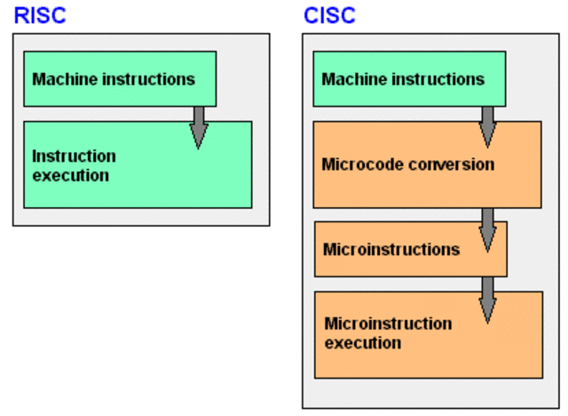 Los microprocesadores CISC tienen un conjunto de instrucciones que se caracteriza por ser muy amplio y permitir operaciones complejas entre operandos situados en la memoria o en los registros internos, en contraposición a la arquitectura RISC.El resultado fue el enfoque CISC,Complex Instruction Set Computing, introducido por primera vez en los IBM System/360 el 7 de abril de 1964. -