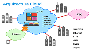 “Es la composición de dos o más nubes, por ejemplo, privada y pública, que permanecen como entidades únicas pero que coexisten por tener tecnologías que permiten compartir datos o aplicaciones entre las mismas” -