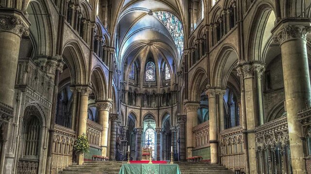 Una de las primeras representaciones ejemplo de la aportación de los artistas del cristal coloreado hicieron a las catedrales de la Edad Media. Albañiles y vidrieros idearon juntos una serie de tracerías que permitían el paso de la luz al tiempo que se representaban diversos grupos de personas, la corte celestial, con Dios en lo más alto. -