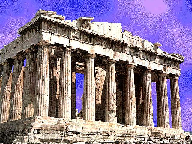 El Partenón es un templo consagrado a la protectora de Atenas, Atenea Pártenos, y uno de los principales templos dóricos octóstilos, algo poco frecuente, de mármol blanco del Pentélico y cubierto con tejas de mármol de Paros