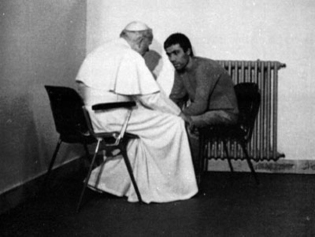 Ağca shot Pope John Paul II in the abdomen and hand. The pope is hospitalized for 22 days.