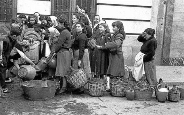 Franco instaura el régimen económico autárquico, con ausencia de comercio exterior y cartillas de racionamiento, lo que hizo proliferar el contrabando y sumió a la población española en una profunda crisis. -