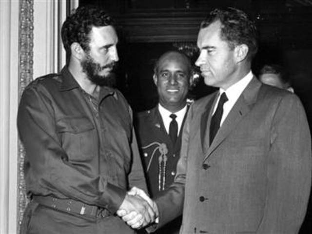 Castro allies Cuba with the USSR. The U.S. breaks off reasons with Cuba because of the nationalazation of thier owned properties. Cuba gets invaded by U.S. trained rebels. John F. Kennedy supported the attack