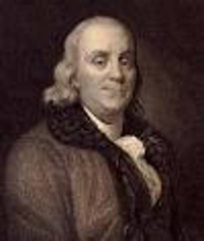 Benjamin Franklin By jaredblomquist Period: Jan 1, 1706 to Jan 1, 2012 America Jan 17, 1706 Ben Franklin Born Period: Jan 17, 1706 to Apr 17, 1790 Benjamin Franklin's Life Jan 1, 1718 Ben Work for His Brother (James Franklin) Jan 1, 1724 Ben Sails to England Jan 1, 1726 Ben Returns to America Jan 1, 1752 Ben Invents Lightning Rod and Discovers Electricity in Lightning Jan 1, 1753 Ben in made the Postmaster for America Jan 1, 1776 Ben helps write the Declaration of Independence Jan 1, 1787 Ben helps write the United States Constitution Apr 17, 1790 Ben Franklin Dies