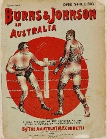 17/7/1907 Jack Johnson defeats Bob Fitzsimmons in Pensylvania