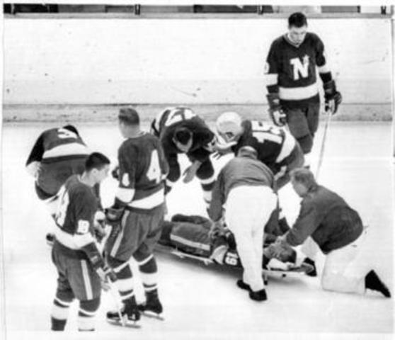 Bill Masterton died from an on-ice injury where he fell backwards headfirst onto the ice after being checked. The hockey players did not wear helmets back then. He suffered a massive brain hemorrhage which the doctors could not perform surgery on, and he died two days later. Played for Minnesota North Stars. (age 29)