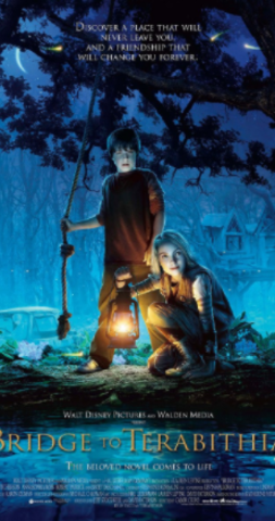 Together, they envision the magical world of Terabithia, which you get to by swinging on a rope over a creek.