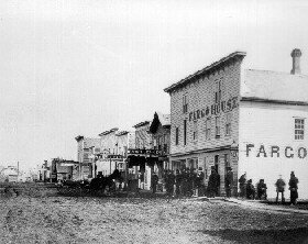 Settlers staked claims where the railroad would cross the Red River.