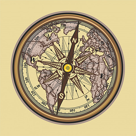 Mas tarde aparecio "la rosa de los vientos" un disco con marcas con divisiones de grados y subdiviciones que señalaba 32 direcciones celestes y Cuatro Puntos Cardinales: Norte, Sur, Este y Oeste.