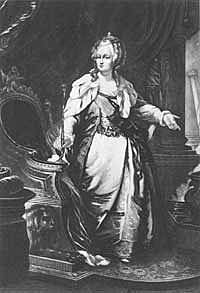 After Czarina Elizabeth dies, Peter takes the throne and Catherine is worried that he will get rid of her, which leads to Catherine declaring him a traitor (picture of Elizabeth)
